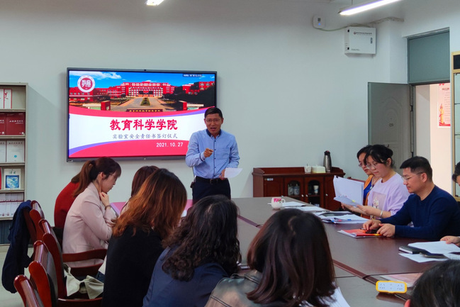 10月27日下午,教育科学学院在院会议室举行了2021年度教育科学学院实验室安全责任书签订仪式,签订仪式由刘新学院长主持。