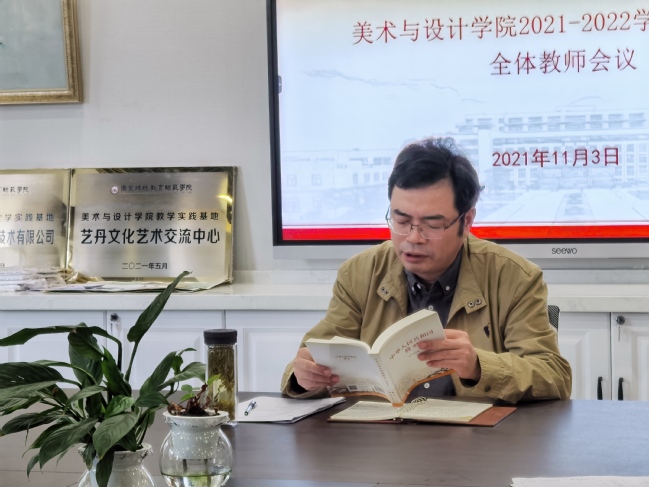 11月3日下午,美术与设计学院召开全体教师会议,开展理论学习活动。会议由学院党总支书记、副院长赵健主持,全体教职工参会。