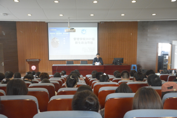 为了使新生更快更好地了解和融入管理学院,提高其政治素养,管理学院于11月3日下午在114报告厅进行2021级新生见面会暨政治导航讲座。学院党总支书记李固新、党总支副书记卢锐航、学工办主任华娟老师、辅导员严励老师以及21级全体同学参会。