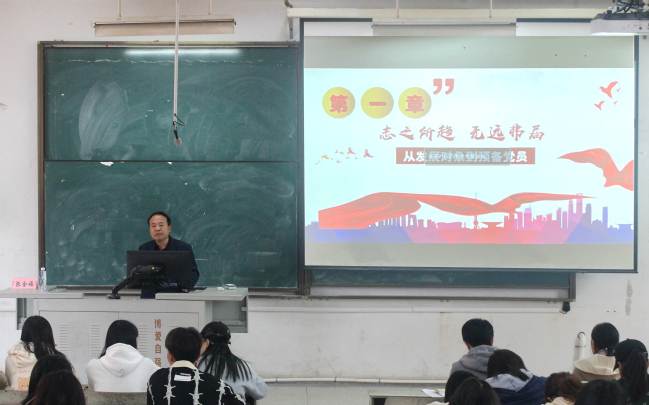 志之所趋,无远弗届。我校党委常委、党委组织部部长张金福的授课主题为《从发展对象到预备党员》。张金福部长具体形象的讲解了“入党申请人、入党积极分子、党员发展对象、预备党员、党员”之间的关系,明确指出在组织入党后要积极争取思想入党。提醒同学们做好充分的入党准备,对全体成员提出两点要求:一要端正入党动机,明确入党初心;二要牢记党员标准,提升党性修养,坚守理想信念。