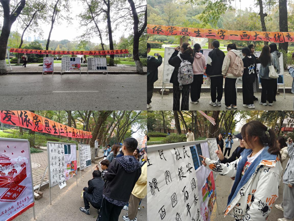 经过激烈角逐,最终选出获奖作品,并于11月17日在学校林荫道进行作品展示。落叶飘飞,墨香弥漫,在环绕大自然气息的林荫道旁,学院向全校师生呈现了一场视觉盛宴,过往的人群纷纷驻足欣赏,完全沉浸于书香世界。