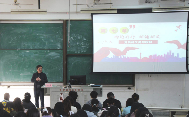 两轮并行,相辅相成。党委学生工作部、学生工作处处长章小军的授课主题为“党员的义务与权利”。章小军处长从党章出发,强调规定党员的权利与义务是提高党员素质、确保党员质量的重要条件,是党内政治生活常规化的有力保障。章小军处长分别从权利与义务两个方向出发,解读党员享有的权利与应履行的义务,并强调党员的义务先于权利。要求广大学生党员一应明确自己的义务和权利、明白自己应该成为一个什么样的人,二要增强党员意识、争做合格党员。