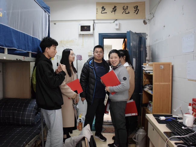 期间,辅导员们同同学们亲切交流,详细询问近阶段学习和生活情况,并就学生住宿环境、饮食问题等方面进行交流。郑老师还细心叮嘱大家注意保暖添衣,强调冬季天气干燥,要确保寝室用电安全,做好宿舍消杀与个人防护工作。此外,辅导员们对同学反映的宿舍厕所老旧失修等设施问题进行记录,新生辅导员翟玉杨老师立即联系提醒物业及时为学生解决。