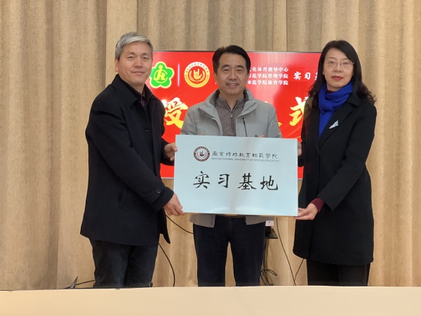 为推进学院高质量发展,全面提高人才培养质量,有效发挥学院专业特色优势,更好地服务残疾人事业发展,日前,由我校管理学院、体育学院与江苏省残疾人文化体育指导中心共同举办的实习基地授牌仪式在江苏省残疾人文化体育指导中心顺利召开。江苏省残疾人文化体育指导中心主任叶霆、副主任邢燕,我校管理学院院长杨会良、党总支副书记卢锐航、副院长常晓茗,体育学院直属党支部书记张启昕、副院长金梅、副院长仝伟出席此次授牌仪式,双方部分教师及相关人员参加此次活动。授牌仪式由江苏省残疾人文化体育指导中心办公室主任陈丽主持。