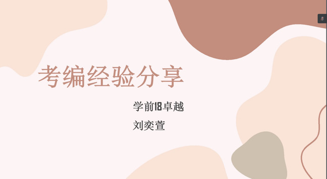 会上,陈思茹等6位同学就考编、面试等做了就业经验分享。就职于栖霞区第一实验幼儿园尧辰园的陈思茹从笔试、面试以及考编后的规划进行了详细的阐述。签约张家港市悦丰幼儿园的杨咏琪同学主要分享了关于校园招聘、社会招聘的经验。就业于北大医疗脑健康儿童发展中心的李欣欣同学,详细地讲述了面试简历制作、工作调研以及工作后面临的挑战等方面的内容。签约无锡市滨湖实验幼儿园的常乐同学总结了自己在考编过程中的学习方法以及笔试、面试中的注意事项。就业于无锡市新吴区梅荆花园幼儿园的刘奕萱同学重点介绍了笔试和面试的方法和技巧以及自己在考编过程中的心得体会。就业于苏州高新区幼儿园的程钱依同学就笔试的前期准备以及面试流程做出了详细介绍。在提问交流环节中,几位同学耐心地解答了同学们提出的问题。