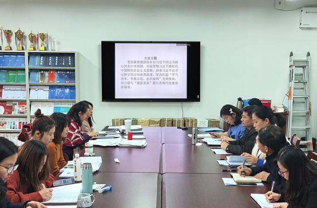 为全面落实党的十九届六中全会精神,围绕“强富美高”总目标,“争当表率、争做示范、走在前列”总要求,深化“两聚一高”新实践,同时加强基层党组织建设,时刻把握党建工作方向,提升教师党员素质能力。教育科学学院于12月22日召开江苏省第十四次党员代表大会精神学习会,全体教师党员参加。