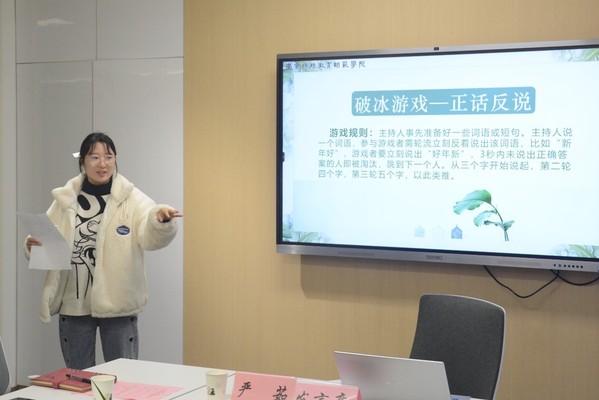 在破冰游戏“正话反说”中,在场的老师与同学热情地互动,释放自身压力,现场气氛十分热烈,在“破冰”的同时,也锻炼自身心理素质,增强了自信心。