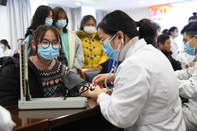 江苏省人民医院泌尿外科、康复医学中心和健康管理中心的主任专家们为在场师生悉心面诊,提供健康咨询、营养指导以及测量血糖血压等服务,有效提升师生对常见疾病的预防保健意识。