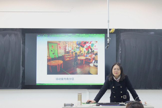 讲座开始,彭云老师以南京二幼区域活动环境创设与发展为例讲述了幼儿园区域活动推进和实施的有关内容,阐释了区域活动的概念,提出区域活动具有自由性、自主性、指导的间接性、个性化的特点。彭云老师指出,环境的创设与利用由“调整格局搭架子”和“交流学习换脑子”两部分组成。同时老师也强调环境的创设需要观察,需要生活经验的积累,更需要有创造性的思维。讲座最后,彭云老师为同学们详细介绍了教师资格证面试的流程和各方面的注意事项。