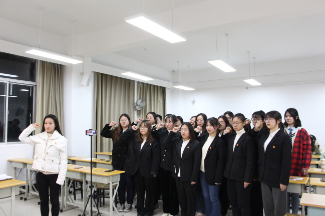 杨菊鑫书记向大会报告了出席会议的党员人数及大会议程。21名发展对象依次汇报对党的认识、入党动机以及需向党组织说明的问题。入党介绍人就发展对象的思想、学习和工作等方面作简要介绍,并对其能否入党表明意见。支部委员会报告对发展对象的审查情况后,与会党员对发展对象能否入党进行充分讨论,采取无记名投票方式进行表决,大会一致通过接收预备党员的决议。21位发展对象就本次顺利转为预备党员依次表达了自己的态度及今后的决心。在党支部宣传委员何江岳老师的带领下,全体新发展的预备党员向党旗庄严宣誓,表达了对党的崇高敬意和为共产主义事业奋斗终身的坚定信念。