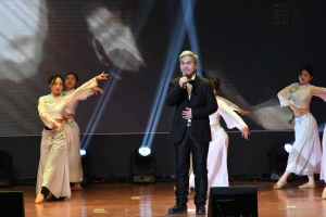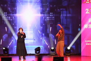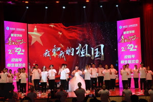 第二篇章“祖国之歌”,老师与同学们用歌舞和朗诵的形式表达了对祖国和党的热爱与赞美,《中华颂》《党的英雄儿女》《以先辈之裂魂,筑吾辈之风貌》等节目,深切地表达出学院师生对祖国母亲深沉的爱意。曹璇老师的《血染的风采》鼓舞人心,杨会良院长的《梦驼铃》把大家带入思念故乡之情,为联欢会增添了浓墨重彩的一笔。最后,整场联谊会在常晓茗副院长与特邀嘉宾旅法艺术家朱杰老师以及管理学院公共服务文艺队的手语舞《我和我的祖国》中暖场收尾。