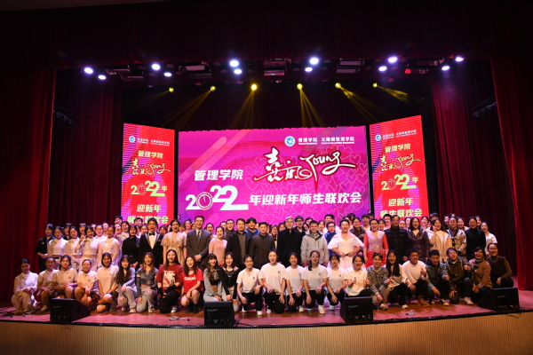 此次管理学院迎新年师生联欢会圆满结束,多才多艺的老师和同学们通过歌舞表演、手语舞蹈、朗诵等多形式的节目,表达了对祖国和党的热爱及赞颂,充分展现了学院积极向上的精神风貌,促进了师生关系,增进了同学间的友谊。联欢会尾声,所有师生上台合影留念。(文/彭琳 图/郭洪琛 孟丹 审核/杨会良 杨黎珍)