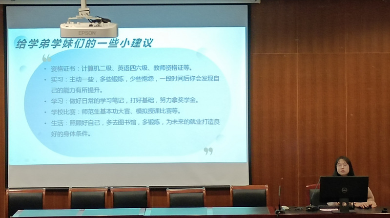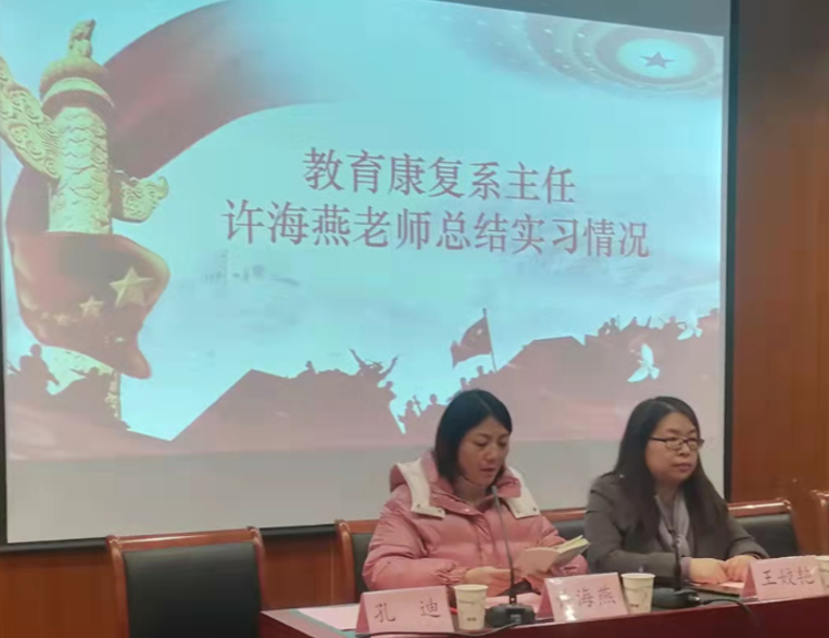 12月30日下午举行了2022届教育康复学专业毕业生实习总结大会。 教育康复系主任许海燕老师首先介绍了2022届教康专业实习生的实习安排,总结实习工作中的人才培养亮点,充分肯定了同学们的实习成果,同时也对下学期毕业生的校内学习提出要求。在特殊教育学校、康复机构和普通学校等不同实习单位的五位优秀实习生代表依次进行了汇报发言。他们将实习经历以文字、图片和视频的方式进行呈现,从教学工作、班级管理、个人体悟等方面对自己的实习情况做出展示,他们希望通过自己微薄的力量,帮助更多的特殊儿童走向社会、融入社会。学院王姣艳副院长发表总结讲话。她强调,教育康复学专业是师范类专业,同学们一定要加强自身师德教育,重塑特殊儿童教育观,从教后务必以博爱情怀关心关爱特殊孩子,时刻进行自我反思和自我成长。2019级学生要以优秀实习生代表为榜样,保持进取之心,提前做好职业规划和相关准备工作,同时祝愿2022届学生顺利就业,找到理想去处!