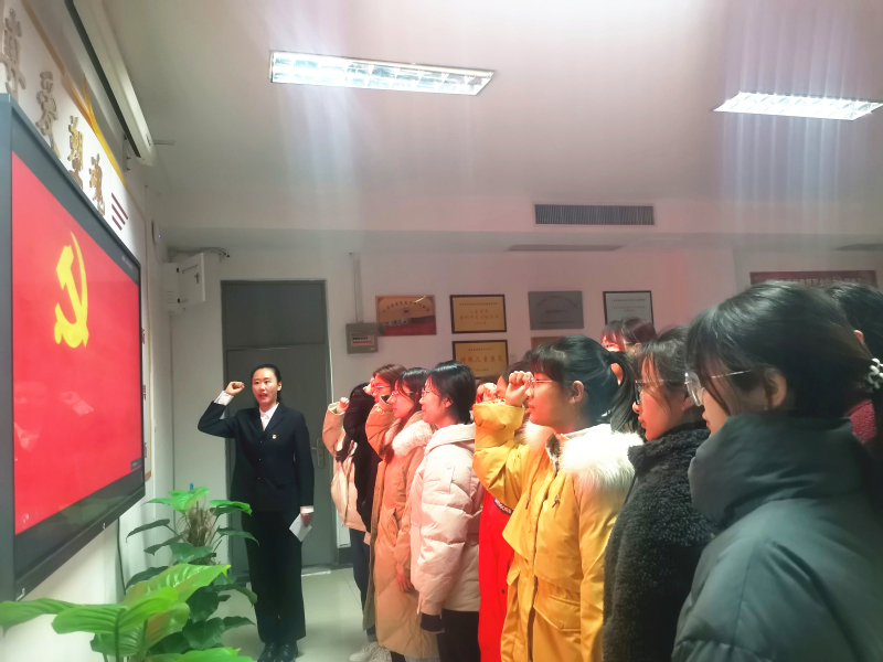 大会最后,在学生党员唐晓慧的带领下,新入党同学对着党旗进行了庄严的入党宣誓。