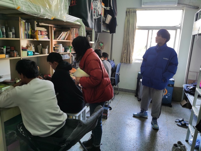 张书记在走访宿舍中,和学生热情攀谈,关心同学们开学后的情况,记录反映的困难、问题并耐心解答,同时详细了解学生线上教学的学习情况,仔细询问学生的学习进度,并对全体同学的寝室卫生、寝室安全等问题提出了要求,希望各位同学可以严格要求自己,遵守校规校纪,为线上学习提供良好的生活空间与环境。