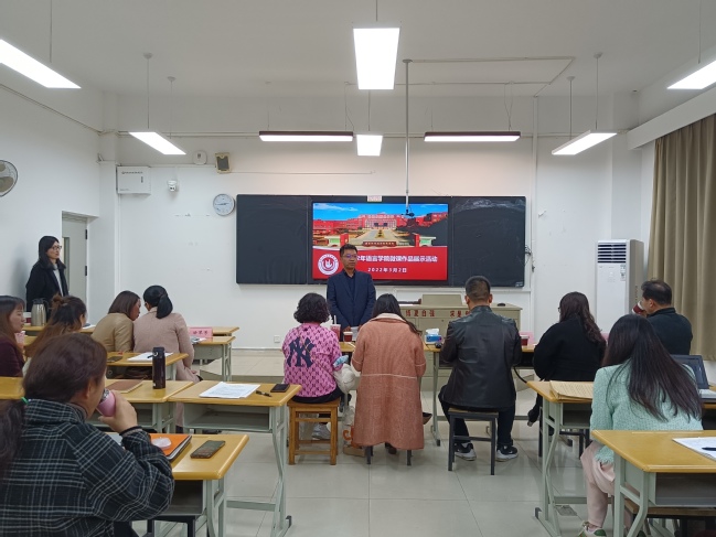3月2日下午,为展示老师们的教学风采,并为新入职老师提供学习机会,语言学院举办教师微课作品展示活动。此次活动参加人员有教务处副处长葛修娟、学院执行院长王东、党总支副书记丁祖保、以及有丰富相关经验的郭新文老师和往届微课作品获奖老师许梦阳、江枫、梁娟等组成的专家评委团。活动由学院副院长徐琴芳主持,学院近两年新入职的十余位老师参加观摩。