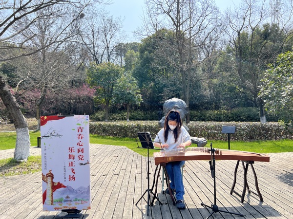3月7日,学校恢复线下教学第一天中午,音乐与舞蹈学院在残障名人文化园首次推出主题为“青春心向党,乐舞正飞扬”的音舞小舞台专业基本功展示活动。舞蹈班同学在林荫大道以快闪形式,表演了手语舞蹈《万疆》,他们将手语融入绰约的舞姿,用青春的姿态展现出对祖国美好未来的向往。18级张琳涵同学现场弹奏了气势磅礴的古筝曲目《战台风》,仿佛再现了上海的码头工人抗击台风的英雄气概,同时也激励同学们要有克服困难、不畏艰难险阻的精神。19级王玉婕同学也弹奏了一曲《我和我的祖国》,表达了青年同学的报国之心、爱国之情。