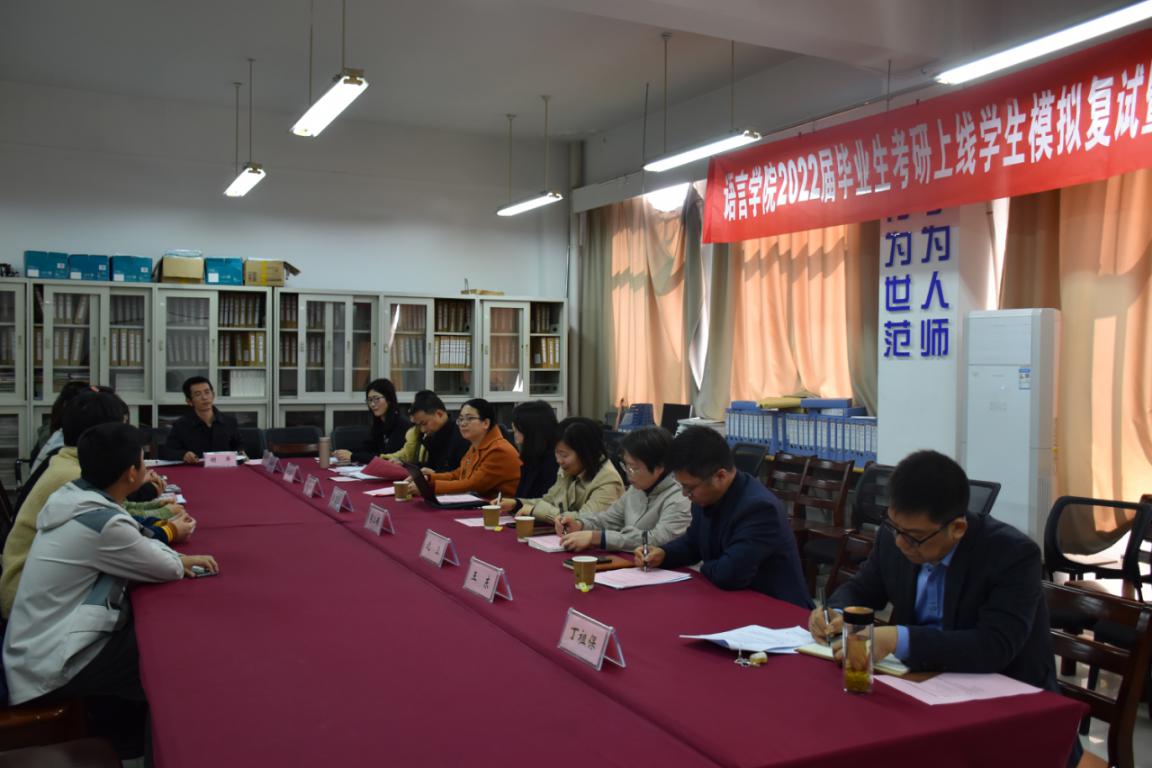 3月9日上午,语言学院举办2022届毕业生考研上线学生模拟复试暨辅导座谈会。学院党政班子全体成员、考研复试结对帮扶教师、辅导员及考研上线学生参与本次活动。