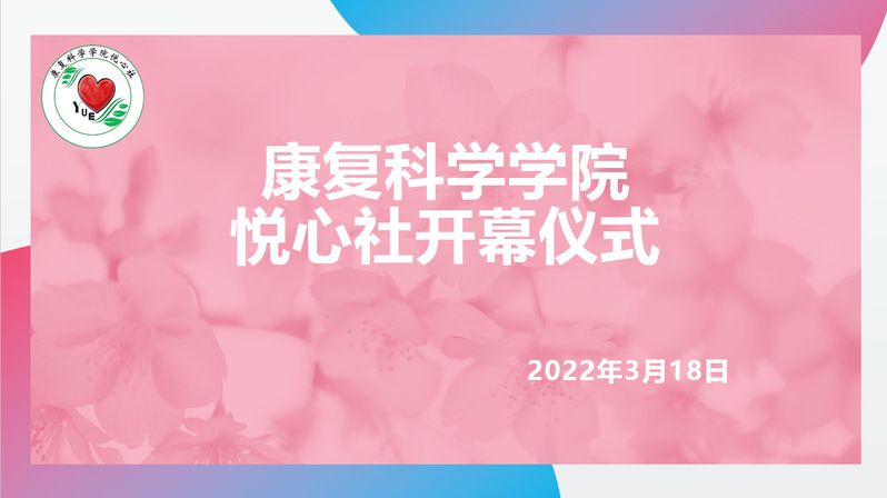 为进一步推动学院心理健康辅导站平台建设,在全院范围内搭建全员、全过程、全方位育人网络,康复科学学院积极组织筹划,于2022年3月18日举行社团开幕仪式,心理社团“悦心社”正式成立。考虑到南京市疫情防控要求和学校封闭式管理政策,开幕仪式借助腾讯会议举行。党总支吴填副书记、心理辅导员王雪梅老师、辅导员王国庆老师、悦心社负责人及各班心理委员参加,仪式由辅导员孔迪老师主持。