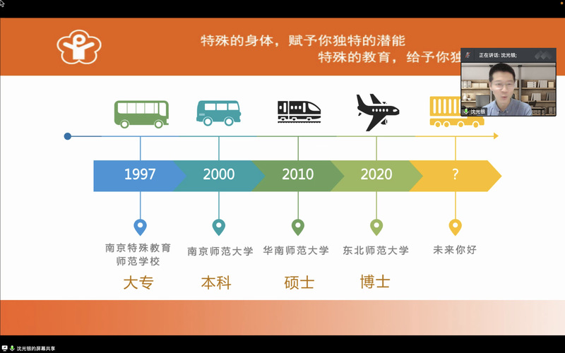 为进一步加强同学们对考研的认识,帮助同学们明确考研目标,掌握相关考研技巧,缓解备考焦虑,康复科学学院以线上会议的形式,于4月6日晚举办2023届考研系列讲座(二)。本次讲座邀请到我校976班优秀毕业生、深圳元平特殊教育学校高级教师、东北师范大学博士研究生沈光银老师作主讲嘉宾。沈老师讲座的主题为“为学日益,为道日损——吾之考研路上的考验与突破”。本次讲座由康复科学学院辅导员王国庆主持,2019级有意向考研同学积极参与。