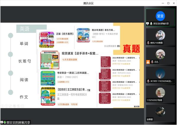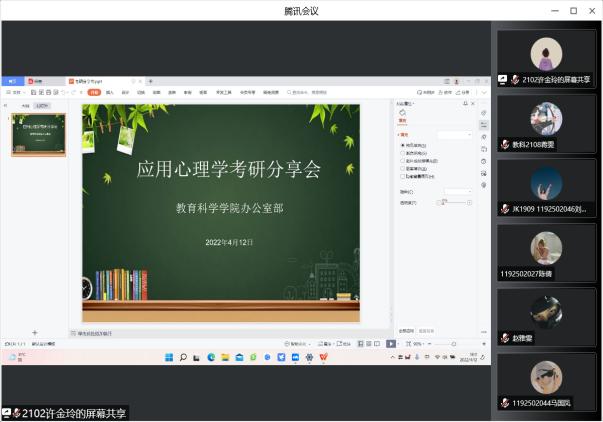 为向考研学生提供考研及就业经验,消除内心疑虑,使大一同学更早接触了解考研,帮助大二大三同学更全面认识考研形势,教育科学学院于4月11-12日举办考研就业经验线上分享会,邀请优秀毕业生分享自己的心得,全体学生积极参与。