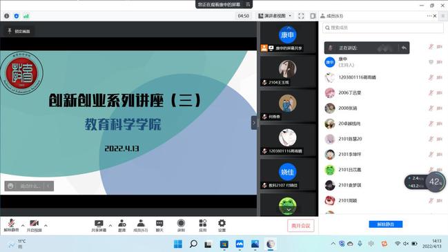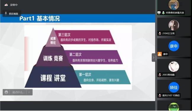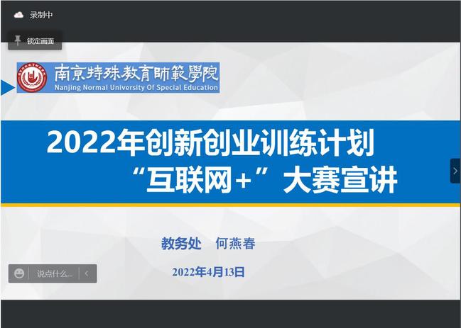 为帮助同学们了解大学生创新创业训练计划、“互联网+”大赛的相关内容,以及申报书、答辩ppt的准备要求等事宜,教育科学学院于4月13日在线上举办创新创业系列讲座——创新创业训练计划、“互联网+”大赛宣讲,讲座邀请学校教务处实验实训科科长何燕春老师为同学们带来精彩分享,学院20、21级同学积极参与。
