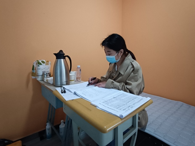 在4月16日、17日的核酸检测中,作为党员的辅导员老师们在接到通知后踊跃报名,冲锋战疫第一线,争当抗疫志愿者。作为采集信息扫码人员,一遍遍重复着相同的动作,无论是核酸检测现场,还是学生隔离点,都能看到他们忙碌的身影。虽然做得是平凡小事,但他们最为可贵的是坚持、落实与行动。