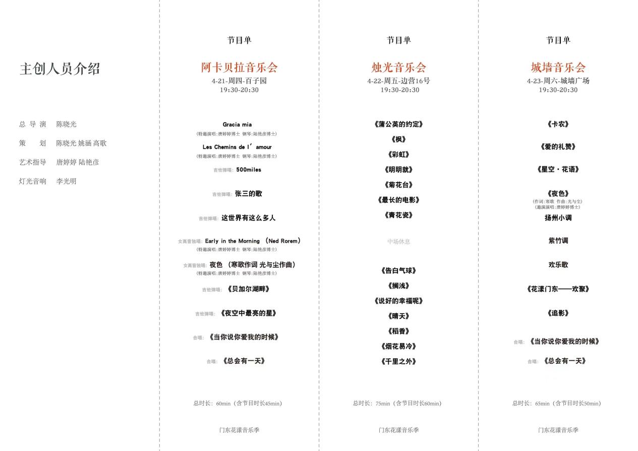 为弘扬伟大抗疫精神,在做好疫情防控的前提下,由南京市秦淮区人民政府夫子庙办事处、南京城南历史文化保护与复兴集团有限公司、江苏省交响乐团、江苏省演艺集团等单位联合主办,南京门东“花漾音乐季”于4月21日-25日举行,以“万物生长、生生不息”为主题,为南京人民带来了一场温暖人心、古典于现代交融的视听盛宴,展现了伟大中国海纳百川的胸怀,以及民众们在疫情期间乐观坚毅的品质。我校音乐与舞蹈学院教师唐婷婷、陆艳彦博士担任本次音乐季节的艺术指导。