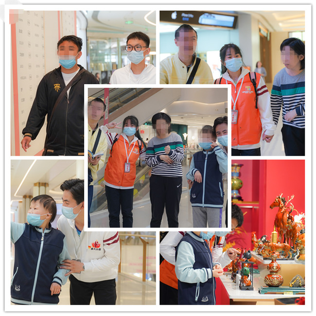 活动中,6名志愿者与特殊儿童“一对一”牵手“走商场”,并在商城中帮助他们认识各类物品,引导他们学会与人交流,更好地融入社会环境。通过与特殊儿童的相处,6名志愿者将所学理论知识运用于社会实践中,进一步了解特殊儿童的生活习性与个性特点,积累助残服务的经验和本领,更坚定阳光助残服务的信念与信心。志愿者汪鹏同学说:“每一个孩子都是一名天使,我们会给他们一双‘隐形的翅膀’帮助他们飞翔!这是我在疫情期间第一次近距离接触特殊儿童,也坚定了我努力为他们服务的决心”。