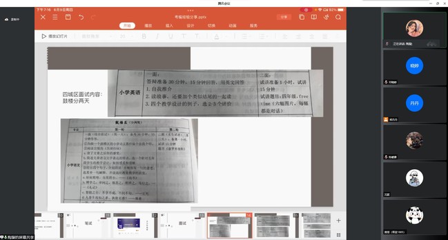 陶璇同学谈到,教案设计是每一名在校大学生较为薄弱的环节。她详细讲解了教案设计的流程,包括知识点导入、设问、教学片段设计和板书内容等。陶璇同学强调,准备学科知识的考试要重点抓文言文和阅读理解,积累作文素材,多分析真题,有针对性地练习。另外,陶璇同学细致说明了鼓楼区、建邺区、秦淮区、玄武区四大城区的面试内容,重点指出备考期间应熟悉课本内容,多向有经验的教师请教,为考编筑牢坚固的基础。最后,陶璇同学希望同学们主动了解各地招聘信息,充分准备、摆正心态,以最佳的状态进入考试。