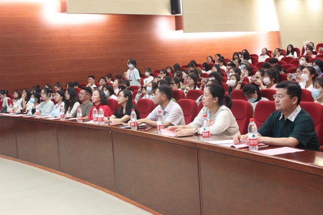 总结过去,展望未来,表彰先进,树立典型,教育科学学院于6月13日晚在实验实训大楼报告厅举办2021-2022年度学生获奖表彰大会,出席本次大会的有教育科学学院领导班子全体成员、全体辅导员以及任课老师代表,党总支副书记吴兴主持,该院各年级学生积极参与。
