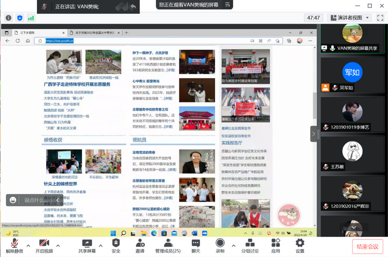 6月18日晚,数学与信息科学学院线上召开2022年暑期社会实践动员大会,学院团总支负责人樊琬老师以及实践队员、各班团支书参加了大会。