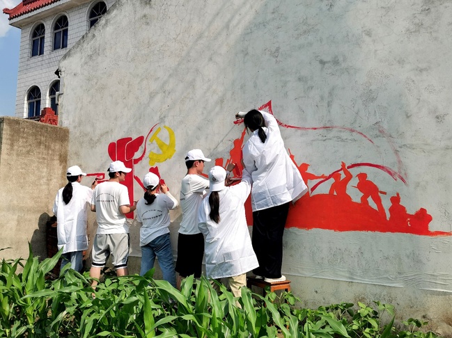 2022年7月,南京特殊教育师范学院教育科学学院专门组建“乡守以墨”三下乡实践团开展“手绘乡村”志愿服务,团队主要成员为学院学前教育专业一、二年级同学,他们发挥专业绘画特长,为实现乡村“各美其美“、助力农村环境提升和美丽乡村建设贡献青春力量。