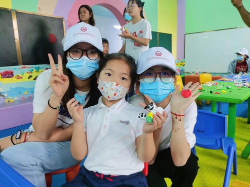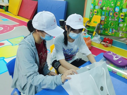为呼吁社会关心,关爱孤独症儿童,2022年8月27日,数学与信息科学学院“鼓楼暑期社会实践团队”联合友邦仁和志愿者联盟共同开展“关爱星星的孩子,公益捐赠一起手工”——呵护孤独症儿童公益活动。