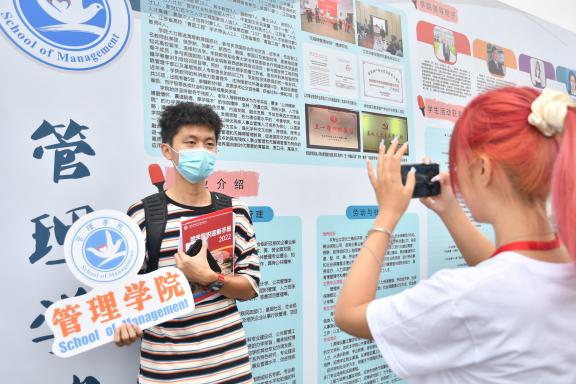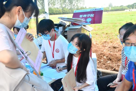 迎新工作如火如荼地进行着,新生丁嘉恒同学在办好自己的入住后主动请缨加入管理学院志愿者队伍,协助学长学姐接待其他新生,新同学也在学长学姐忙碌的时候主动送出小礼物表示感谢,无一不展现着管理学院温暖。