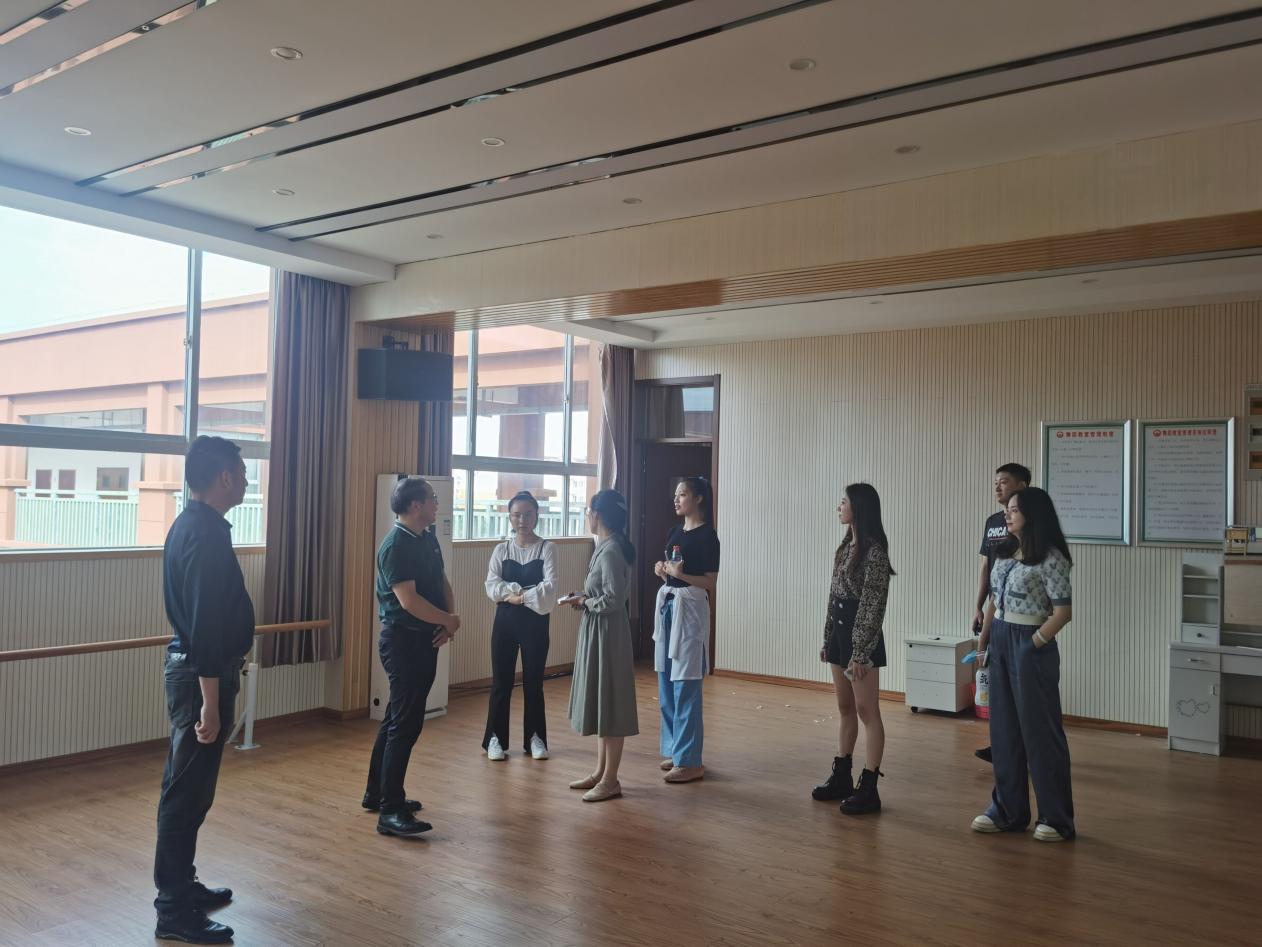 我校音乐与舞蹈学院办公室主任笪莹介绍了参与“美育浸润计划”2022-2023学年阶段工作的四位青年骨干教师,他们共同实地考察黄梅中心小学舞蹈房和音乐教室,现场列出帮扶计划清单,并对本学期工作进行了详细规划。舞蹈指导老师杨佳蕾、樊钰蕾,合唱指导老师沈钰、吴炯衡分别阐释了专项指导具体方案,表示将抓住这次难得的机会,提升师生教育教学与艺术实践的能力,推动黄梅中心小学的美育日常化、多样化、特色化发展。双方对本次“美育浸润计划”活动的开展充满美好愿景。