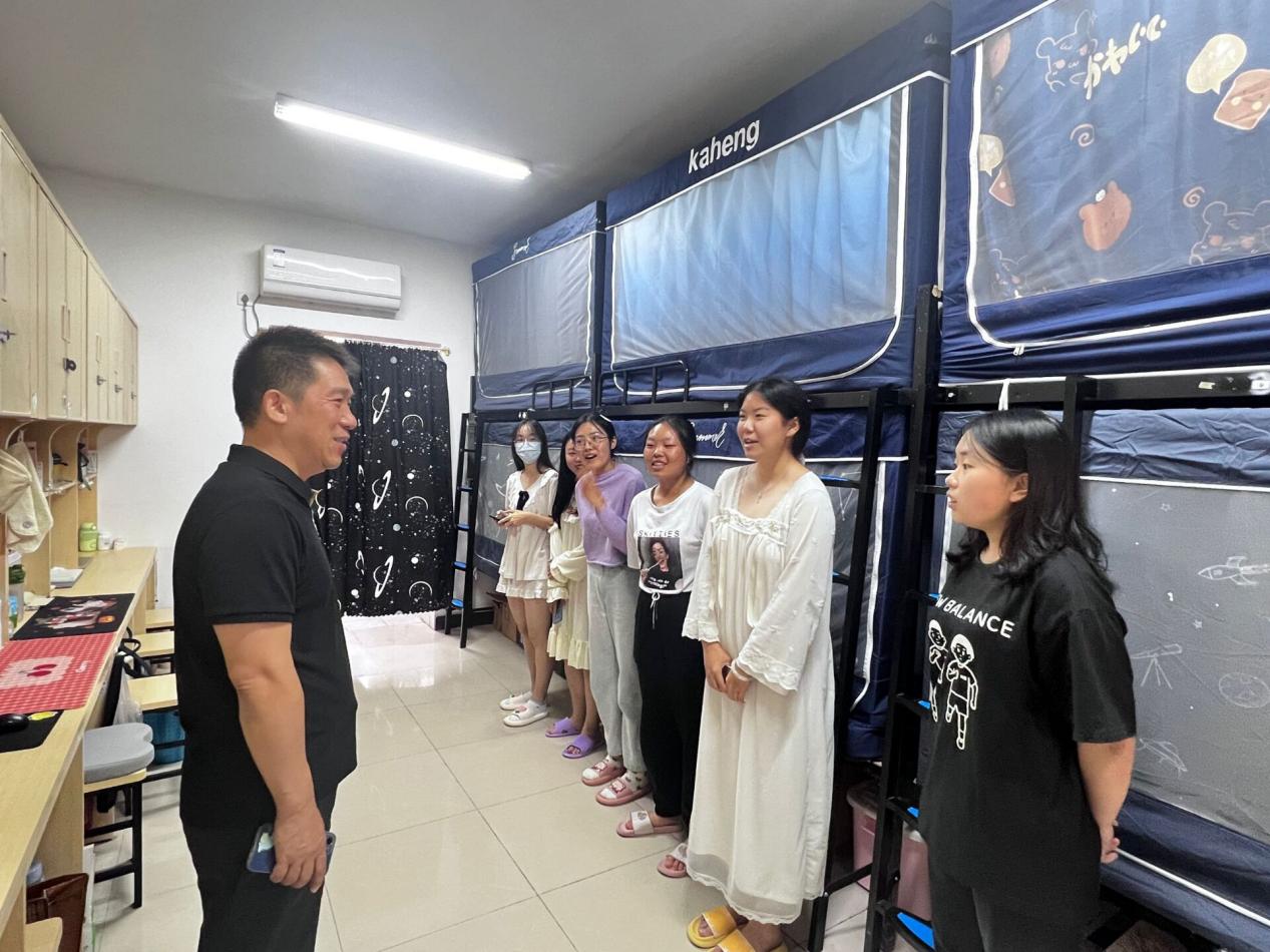 慰问过程中,丁祖保书记前往学生宿舍进行实地走访。走访过程中,丁祖保书记强调,宿舍是同学们进行集体生活的重要场所,宿舍安全问题非常关键。在常态化疫情防控的大背景下,寝室长作为宿舍的主要负责人,应当积极发挥作用,提高责任意识,杜绝宿舍潜在危险,定期组织安全自查工作,确保宿舍安全万无一失。