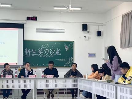 会议伊始,学院副院长张伟锋老师着重介绍本次学习沙龙的背景,表达了对2022级新生的殷切期望。在主旨报告中,嘉宾徐以中教授围绕“为什么要学习和不断进步?大学学习到底学什么?如何进行学习?”三个话题展开讲述。徐以中教授以自己研究生时期的亲身经历为例,鼓励同学培养积极进取的心态。他强调不断获取新知识的重要性,提醒同学们重视英语学习,要在学习中不断提升创新能力、研究能力、认知能力、实践能力。最后,徐以中教授鼓励同学们大胆尝试,敢于做大事,走出舒适区,但不要苛求完美。