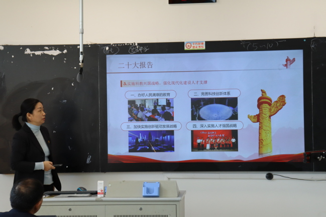 党总支吴月华书记围绕党的二十大报告,带领大家学习了十年来中国共产党所取得的伟大成就、未来发展蓝图以及新时代新阶段事关党和国家全局的重大理论和实践问题,为我们党团结带领全国人民全面建成社会主义现代化强国、实现第二个百年奋斗目标,以中国式现代化全面推进中华民族伟大复兴提供了科学指导。