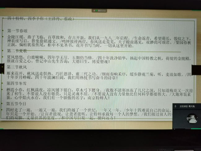 10月26日下午,语言学院中文系召开线上会议,研讨关于校庆诗朗诵的相关创作问题。研讨会由系主任康盛楠教授主持,全体中文系教师参加。