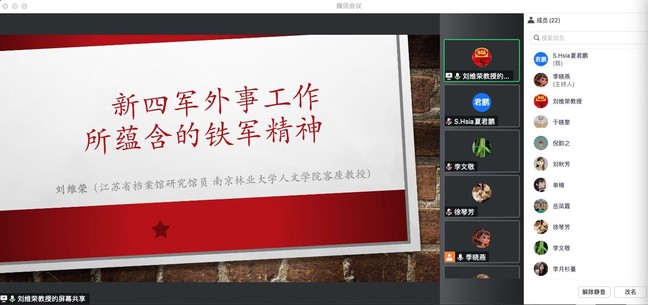 刘维荣做了关于“新四军外事工作所蕴含的铁军精神”的报告。报告介绍了新四军的成立历程及领导人的国际视野,报刊宣传中的“铁军”精神事迹,介绍了新四军领导人和国外友人相关事迹,既有宏观史实的梳理,又有具体事例的介绍,点面结合,全面地介绍了新四军在抗战过程中遭遇的艰辛和获得的成果,强调了新四军在抗日统一战线中的国际视野和家国情怀,突出了新四军外事工作的深远意义,并给教师们总结了三个启示。