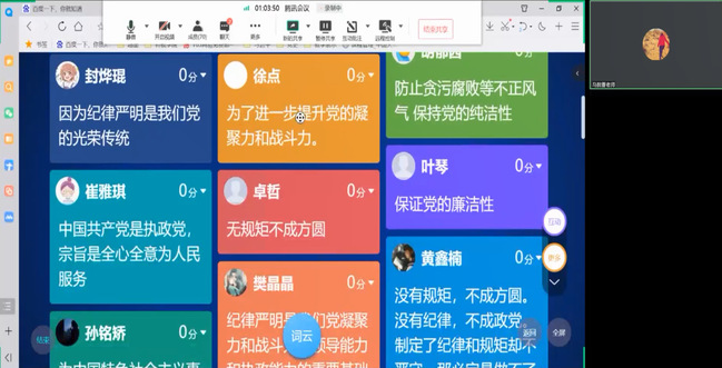 曹宗敏老师详细介绍了中国共产党的组织原则和领导制度,引导同学们深入了解党的管理智慧。针对“什么是民主集中制”和“怎样坚持民主集中制”等重点问题,曹老师利用互动教学系统,鼓励学员们参与到课堂讨论中。在曹宗敏老师的引导下,学员们积极与老师展开互动讨论,充分发表自己的见解和观点。在观看完关于遵义会议的纪录片后,同学们切实感受到在我国实行民主集中制的重要意义。