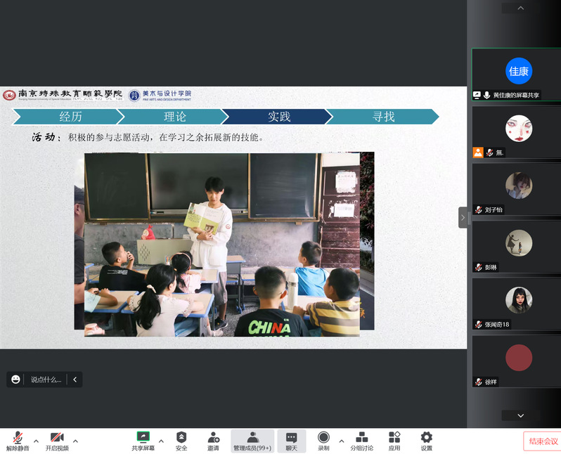 为进一步形成美术与设计学院优良学风,明确同学们的学习目标,帮助同学们寻找身边的榜样、靠近身边的榜样、学习身边的榜样,日前,美术与设计学院举办了“自强先锋”博爱大讲堂第二讲。2020级五位同学作为代表进行了分享,2021、2022级部分同学参与了本次讲座。讲座由学院党总支副书记彭琳主持。