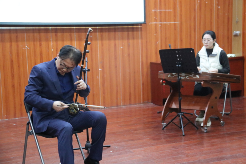 11月13日下午,音乐与舞蹈学院邀请著名二胡演奏家、民乐指挥、南京师范大学音乐学院教授、国家一级演奏员、硕士生导师召唤教授,来到学院音乐厅举办《秀美江南 琴韵流芳——江南风格二胡作品的赏析与演奏》讲座。音乐与舞蹈学院院长张强主持此次讲座。
