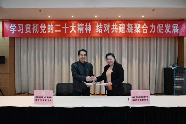 签约仪式之前,体育学院直属党支部书记张启昕介绍了多年来双方推进合作共建的情况,她表示,与江苏省残疾人文化体育指导中心共建体育学院,是我校与江苏省残联实施战略合作的一项重要举措,旨在充分发挥双方的资源和优势,更好地服务残疾人事业发展和特殊教育人才培养。在省残联领导的关怀下,在文体中心领导和同志们的全力支持和无私帮助下,我校顺利建设了浦口校区,双方在协同育人上做了很多探索,希望通过两个支部结对共建,进一步筑牢坚强战斗堡垒,实现共同提高、共同促进,助力全方位深化合作办学,推动深度融合,以高水平党建引领推动事业高质量发展。