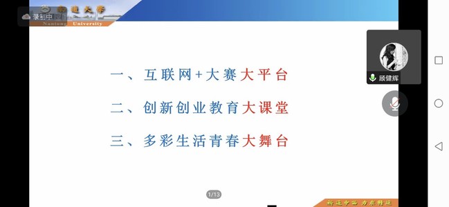 11月24日晚,江苏省科技创业导师顾健辉教授应邀为我校学生做了一场题为《双创大课堂 青春大舞台》的线上专题讲座。体育学院直属党支部书记张启昕、团总支副书记屈文文及体院星火公益团队的同学们聆听了讲座,活动还吸引了各二级学院百余名学生参与。
