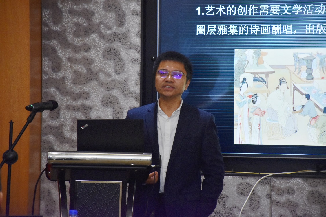 语言学院执行院长王东教授从艺术与文学的交叉融合角度探讨了艺术的文学传播问题,具体讨论了艺术的文学传播应研究什么、为何研究以及怎样研究的问题。