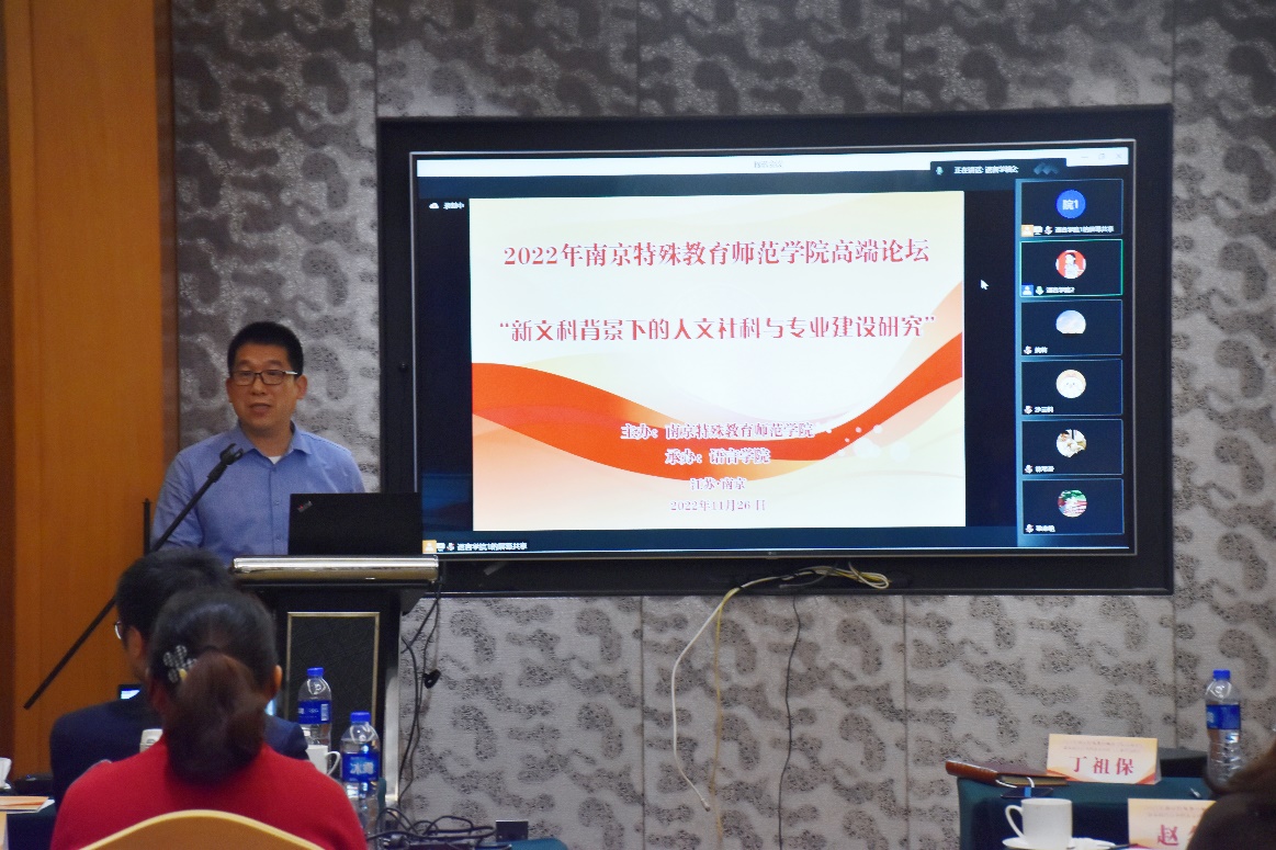 11月26日,适逢我校四十周年校庆之际,为更好地推动学科发展和学术交流,加强校际交流,由南京特殊教育师范学院主办,语言学院承办的以“新文科背景下的人文社科学术研究”为主题的论坛以线上线下相结合的形式在玄武湖假日酒店举办。我校副校长许巧仙教授在开幕式上致辞,语言学院执行院长王东教授主持开幕式,语言学院全体教师参加论坛。