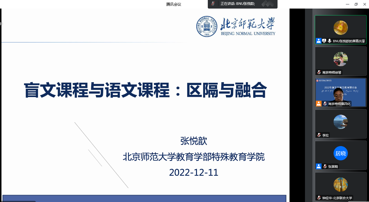 北京师范大学张悦歆博士从国际趋势和实践需求两个方面入手,探讨了盲文课程的独立地位和盲文融入语文课程的路径模式。