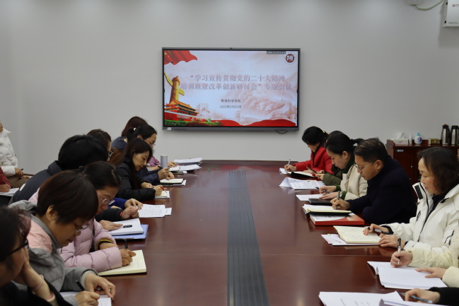 2月22日下午,教育科学学院举行专题会议,深入学习传达校“学习宣传贯彻党的二十大精神暨改革创新研讨会”精神。会议由党总支书记吴月华主持,学院全体教职工参加会议。